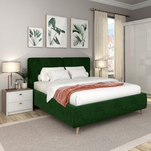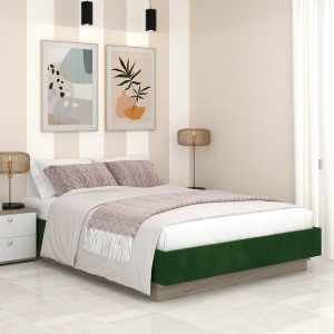 Cadru pat matrimonial LINEA, Oak, Catifea Verde