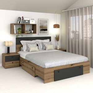 Pat matrimonial PRIMAVERA 160×200, Oak, Catifea Neagra