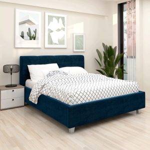 Pat tapitat ARISA, 140×200, suport saltea, catifea Albastra