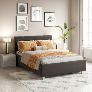Pat tapitat ARISA, 140×200, suport saltea, stofa Gri Inchis