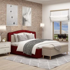 Pat tapitat ARISA, 140×200, suport saltea, catifea Rosu Grena