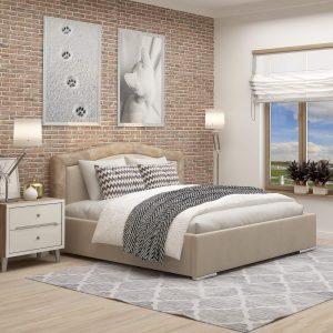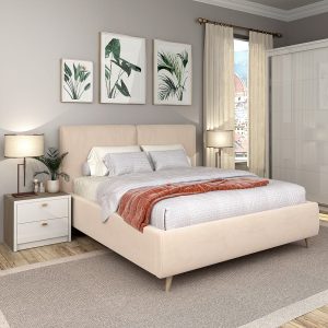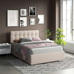 Pat tapitat ARISA, 140×200, suport saltea, catifea Bej