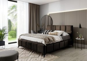 Pat tapitat cu somiera si lada depozitare, 140×200 cm, ELTAP, BE-MIS-22NU, Mist, lemn/poliester, maro inchis