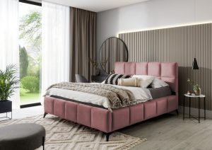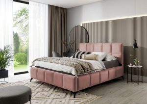 Pat tapitat cu somiera si lada depozitare, 140×200 cm, ELTAP, BE-MIS-24VE, Mist, lemn/poliester, roz