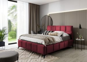 Pat tapitat cu somiera si lada depozitare, 140×200 cm, ELTAP, BE-MIS-25VE, Mist, lemn/poliester, rosu inchis