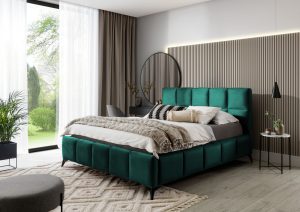 Pat tapitat cu somiera si lada depozitare, 160×200 cm, ELTAP, BE-MIS-35LU, Mist, lemn/poliester, verde inchis