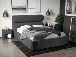 Pat Tapitat Adam cu somiera rabatabila si lada de depozitare Gri – Poso 22 180×200