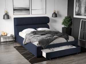 Pat Tapitat Adam cu somiera rabatabila si lada de depozitare Albastru – Falcone 80 160×200