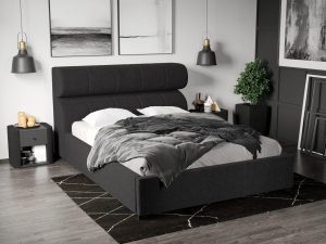 Pat Tapitat Adam cu somiera rabatabila si lada de depozitare Negru – Poso 135 160×200