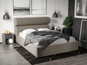 Pat Tapitat Adam cu somiera rabatabila si lada de depozitare Bej – Poso 02 160×200