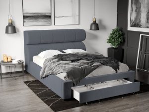 Pat Tapitat Adam cu somiera rabatabila si lada de depozitare Gri – Poso 22 160×200