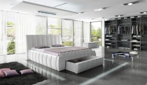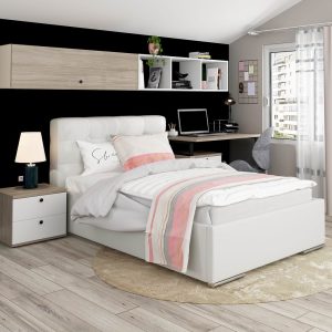 PAT TAPITAT RITA 3, 160/200CM CULOARE WHITE CU LADA DEPOZITARE SI SOMIERA RABATABILA
