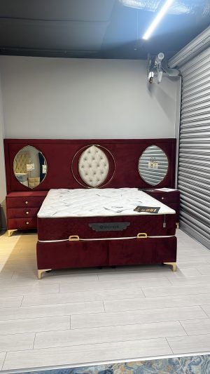 Set Aida 1 Pat matrimonial + 2 noptiere , catifea rosie