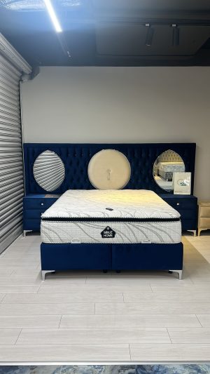 Set Aida 2 , Pat matrimonial + 2 noptiere , catifea albastra
