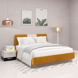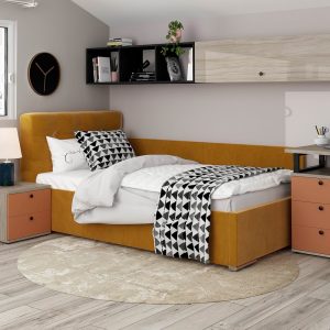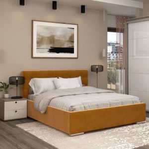 Pat tapitat GEORGIA, somiera rabatabila, catifea Galben Mustar