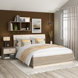 Pat matrimonial AMBRO, cu suport fix inclus, Oak, Vizon