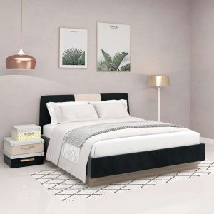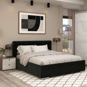 Pat tapitat GEORGIA, somiera rabatabila, catifea Neagra