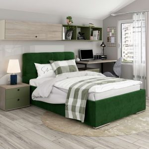 Pat tapitat GEORGIA, somiera rabatabila, catifea Verde
