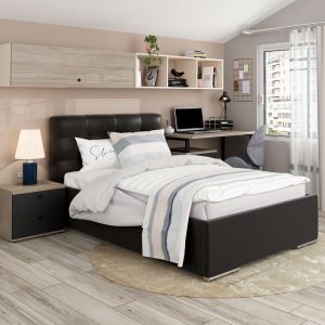 Pat matrimonial AMBRO, cu suport fix inclus, Oak, Antracit