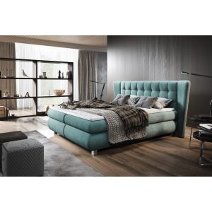 Pat Boxspring Charlotte, cu ladă de depozitare, saltea și topper incluse
