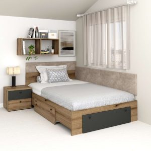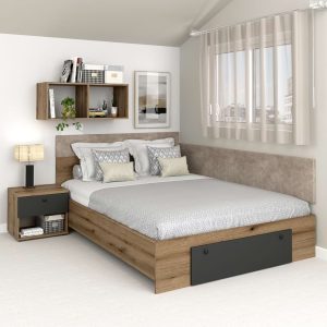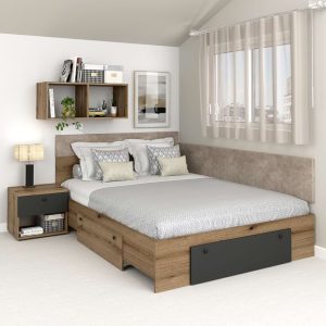 Pat colt AMBRO, 140×200, 2 sertare, Stejar, Antracit