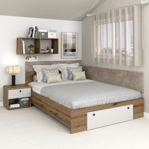 Pat colt AMBRO, 140×200, 2 sertare, Stejar, Alb