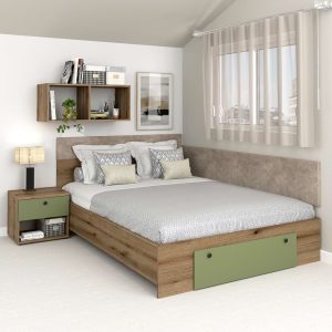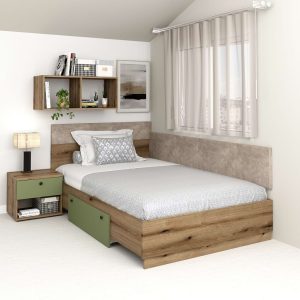Pat colt AMBRO, 140×200, 2 sertare, Stejar, Pesto