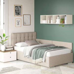 Oferta Pat de colt de o persoana GEORGIA, 120×200, H107, somiera, catifea Bej cu saltea inclusa