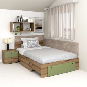 Pat colt de o persoana AMBRO, 120×200, 2 sertare, Oak