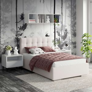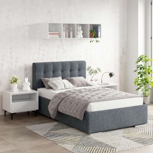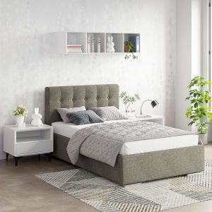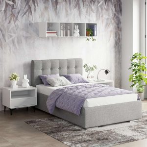 Pat tapitat de o persoana GEORGIA Clasic, 120×200, H107, somiera, Stofa Gri V88