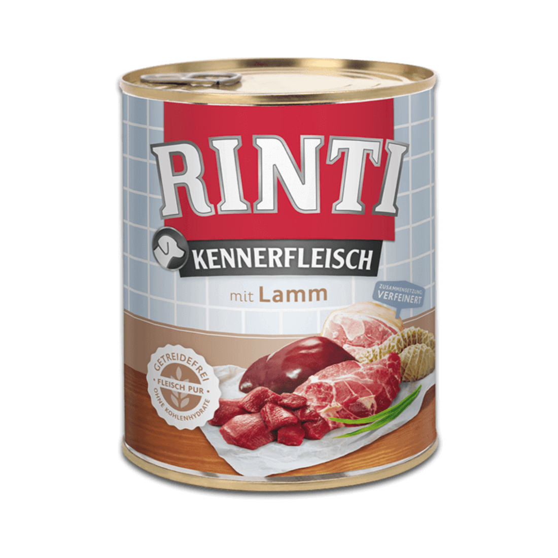 Hrana umeda Rinti Adult cu Miel 800 gr este o alimentatie completa, conceputa pentru toate rasele de caini adulti.Caracteristici si beneficii hrana umeda Rinti:Hrana superpremium; fara cereale, coloranti, conservanti, arome artificiale, soia, potentiatori de gust si miros;70 % ingrediente de origine animala, carne si organe;Ingrediente de calitate superioara ce furnizeaza un nivel adecvat de proteine, grasimi, glucide, vitamine si minerale necesare mentinerii starii de sanatate.Caracteristici si beneficii hrana umeda pentru caini Rinti Adult cu miel 800 g:Carnea de miel are o valoare biologica ridicata datorita continutului bogat in proteine cu digestibilitate si asimilare crescuta. Carnea de miel aduce organismului cantitati insemnate de vitamina B12 necesara formarii globulelor rosii si prevenirii anemiei. Vitamina B12 este implicata si in mentinerea sanatatii sistemului nervos precum si in metabolismul proteinelor, grasimilor si al carbohidratilor;Mentine si stabilizeaza nivelul zaharului din sange. Zincul este un mineral ce se gaseste din abundenta in carnea de miel, acesta sustine sistemul imunitar si normalizeaza valoarea glicemiei reducand riscul de diabet;Acizii grasi omega 3, omega 6 (ulei de in) impreuna cu vitamina B 3 , zinc sustin sanatatea pielii si frumusetea blanii;Previne afectiunile cardiovasculare. Acizii grasi omega 3, omega 6 scad depunerile de colesterol de la nivelul vaselor, normalizeaza tensiunea arteriala si circulatia sanguina, previn aritmiile cardiace si reduc riscul de infarct;Performanta digestiei. Fibrele hranesc bacteriile benefice de la nivel intestinal carora le asigura dezvoltarea si functionalitatea, faciliteaza digestia si asimilarea nutrientilor, reduc fermentatiile si disconfortul abdominal, normalizeaza tranzitul si reduc mirosul fecalelor;Mentine dezvoltarea masei musculare si a greutatii corporale normale prin urmatoarele mecanisme: fibrele mentin senzatia de satietate, proteinele asigura satietatea si dezvoltarea masei musculare, acizii grasi reduc colesterolul.Primele trei ingrediente: Miel (30%), ficat, sorici.Aditivi nutritionali (per kg): Vitamina D3 200 IE, zinc (oxid de zinc) 13 mg. Constituenti analitici: Proteine10 %Grasimi8 %Fibre0.6 %Cenusa2.5 %Calciu0.3 %Fosfor0.25 %Umiditate78 %Compozitie: Miel (30%), ficat, sorici, muschi, maruntaie, rinichi, uger, ulei de in, fibre de sfecla (0.2%). Ghid de hranire: Greutate caine (kg)Cantitate de hrana (g/zi)1040020800301600