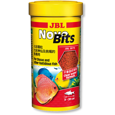 Hrana pentru pesti Discus JBL Novo Bits 250ml – Hrana pentru pesti cu continut de carotenoizi, ce ajuta la intensificarea coloritului.Contine vitamina E si vitamina C.Ingrediente: Molustele și crustacee ( 27,5 %) Cereale ( 26,0 % ) Peste si produse secundare din peste ( 20,8 % ) Legume ( 12,5 % ) Vegetale produse secundare ( 12,2 % ) Ulei si grasimi ( 1,0 % )Constituenti Analitici: Proteina bruta ( 43,0 % ) grasime bruta ( 6,0 % ) Fibra bruta ( 3,0 % ) Cenusa bruta ( 10,0 % )Caracteristici:Ingredientele brute selectate asigura o nutritie completa, o crestere ideala si culori vii pentru toti pestele discus.Nutritioase, usor de digerat, consolideaza sistemul imunitar: aportul specific de hrana specific speciei datorita granulatului semi-plutitorContinut: 10,5 lGreutate bruta: 5464 gGreutate neta: 5120 gDimensiunea (l/h/w): 265/265/265 mm