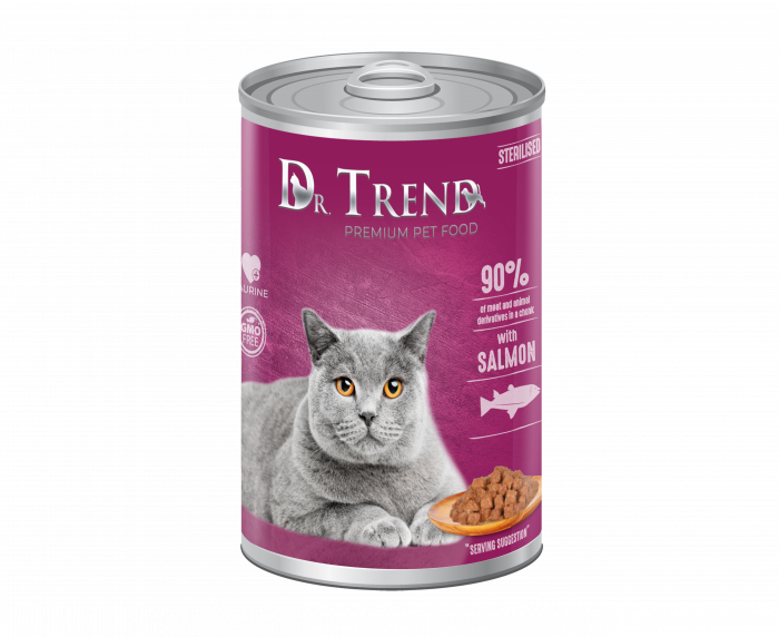 Dr. Trend Conserva pentru pisici adulte sterilizate, cu somon in sos 10×400 g