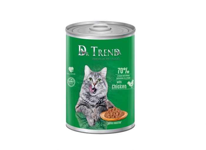 DR. TREND Hrana completa pentru animale de companie, conservata cu pui in sos delicat, pentru pisici adulte de toate rasele. 10 x 400g Compozitie: carne si derivati de origine animala (70% carne si derivati de origine animala intr-o bucata, dintre…