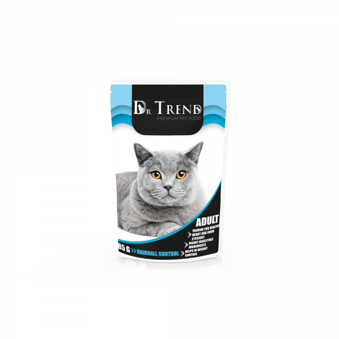 Hrana umeda completa Dr.Trend Premium pentru pisici Hairball Control, 12×0,085g Compozitie: 90% carne si derivati de origine animala in felii (de pasare; de porc; derivati de origine vegetala), extracte de proteine vegetale, minerale. Constituenti…