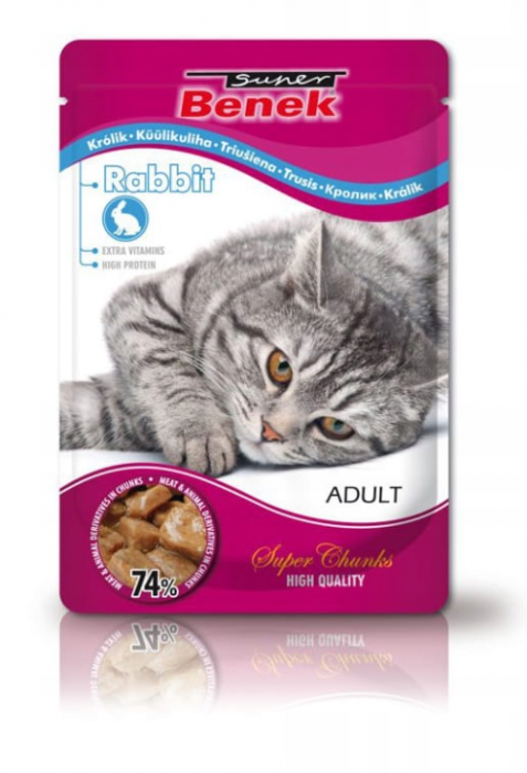 Super Benek Premium, Hrana umeda pentru pisici adulte, cu iepure in sos, 24x100g