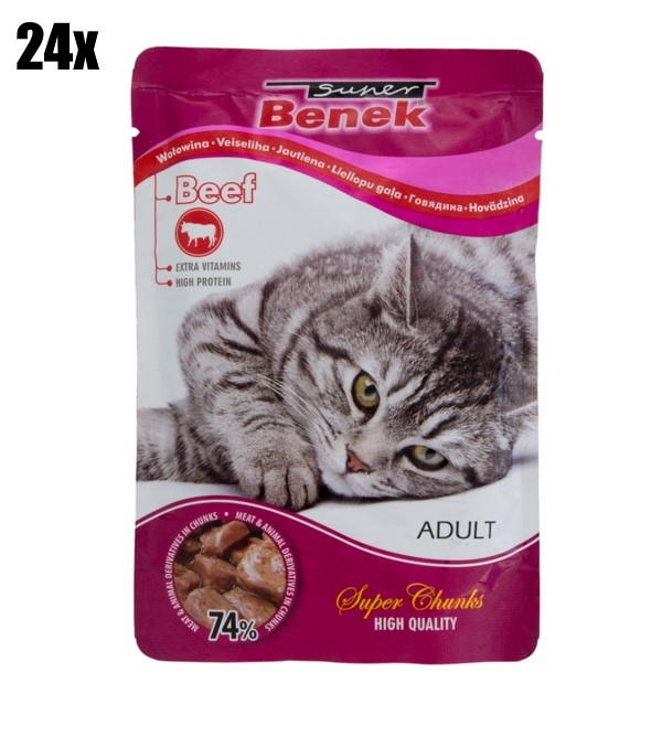Super Benek Premium, Hrana umeda pentru pisici adulte, cu vita in sos, 24x100g