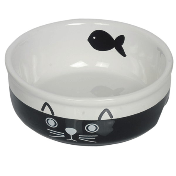 Castron ceramic pentru pisici Nobby Cat Face 250ml – Potrivit pentru mancare cat si pentru apa.Caracteristici:Datorita bazei mai mari, bolul este stabil si se mentine pe loc.In fata este o fata de pisica si in interior un peste imprimat. Aceasta versiune are o dimensiune de Ø 13.5 cm