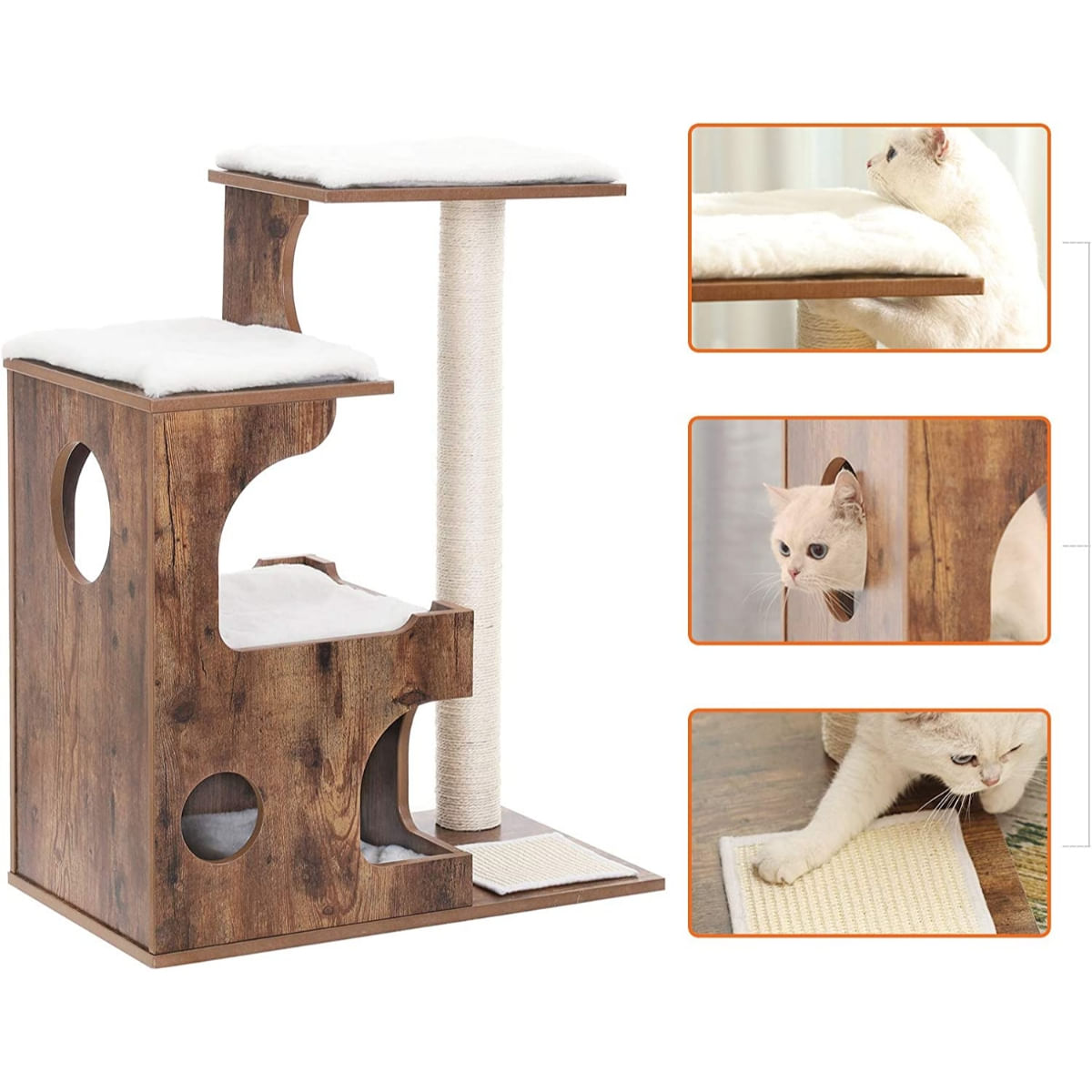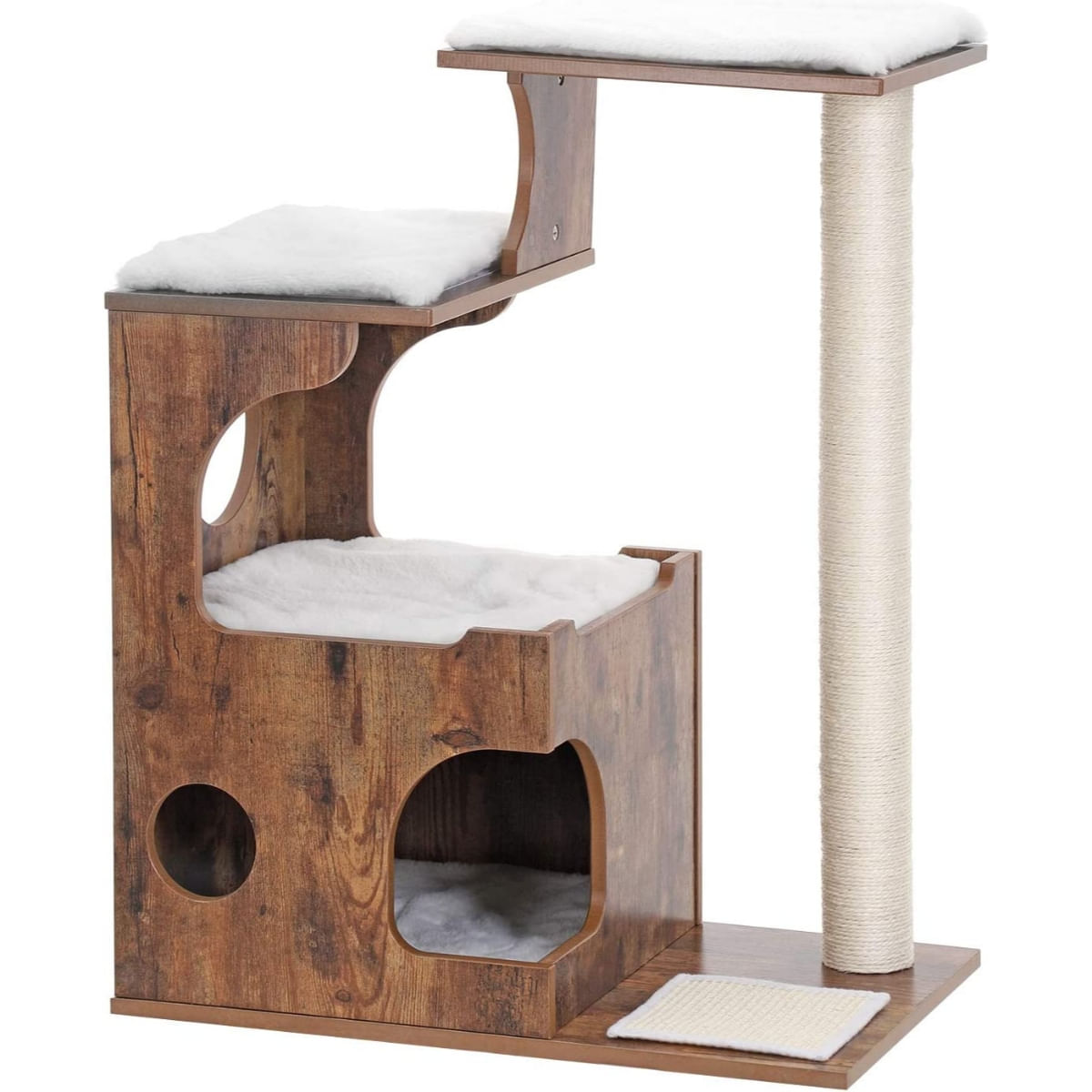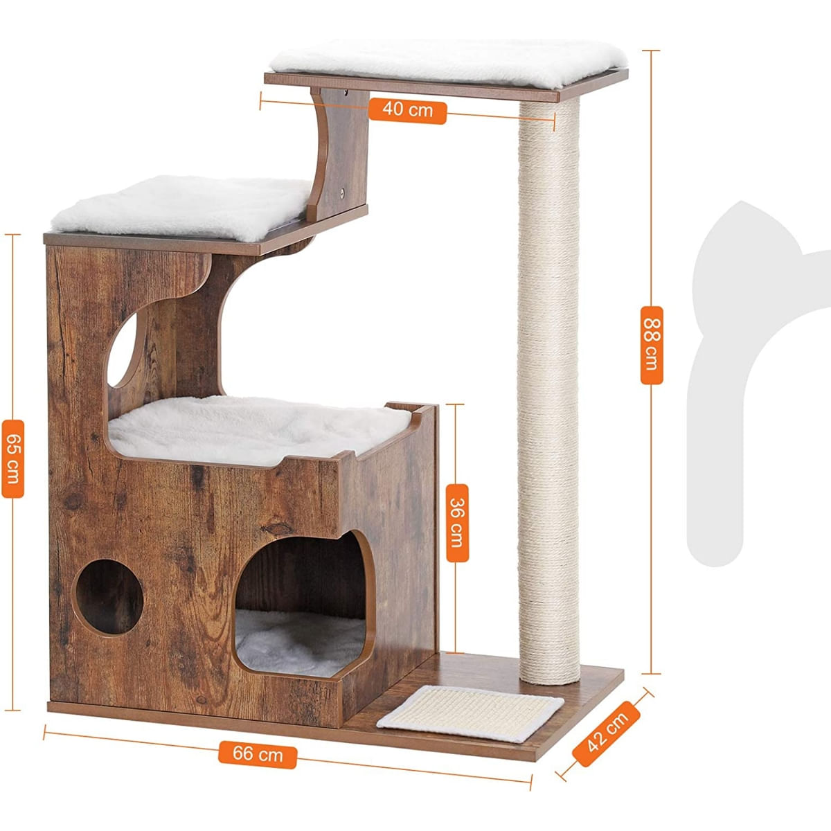 FEANDREA Cat Tree, Ansamblu de Joaca cu turn, pisici, S-M, maro și alb, 66 x 42 x 88 cm