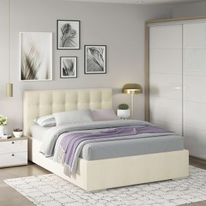 Dormitor GEORGIA 1, Oak, Alb Gloss, Catifea Bej