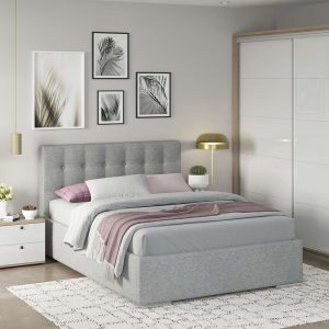 Dormitor GEORGIA 1, Oak, Alb Gloss, Stofa Gri V90