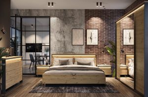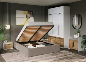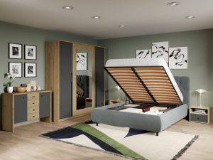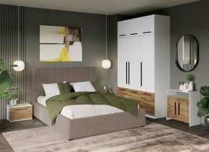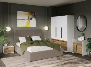 Set Mobila Dormitor Noce T1 cu Pat Tapitat