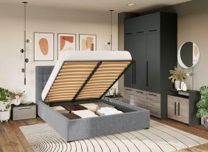 Set Mobila Dormitor Noce T5 cu Pat Tapitat