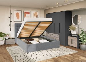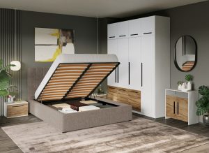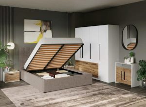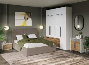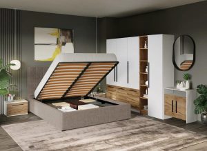 Set Mobila Dormitor Noce T2 cu Pat Tapitat