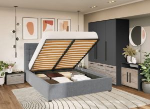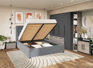 Set Mobila Dormitor Timea T5 cu Pat Tapitat