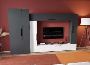 Living Pati 155 – Mobila Sufragerie Gri Antracit + Alb