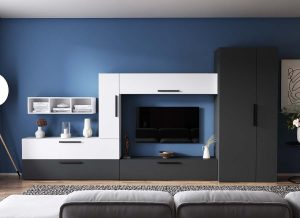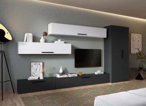 Living Pati 183 – Mobila Sufragerie Gri Antracit + Alb