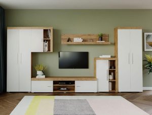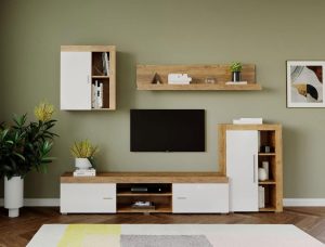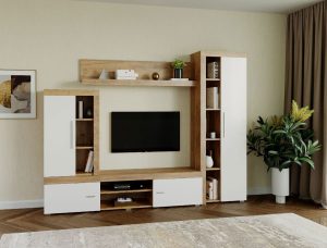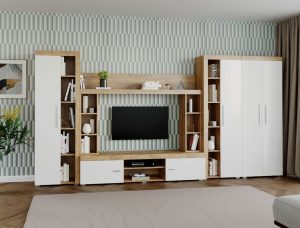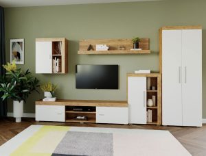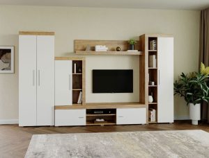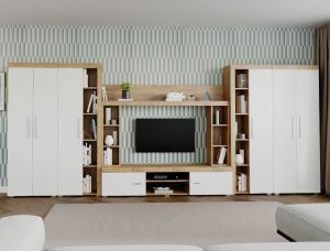 Living Pati 009 – Mobila Sufragerie Alb + Stejar