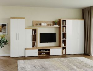 Living Pati 008 – Mobila Sufragerie Alb + Stejar