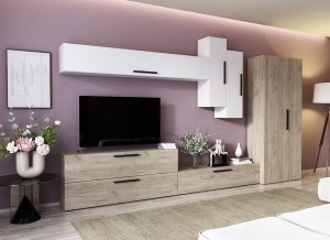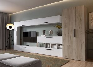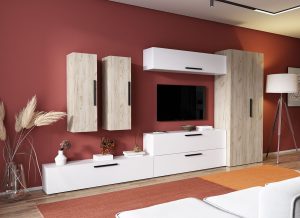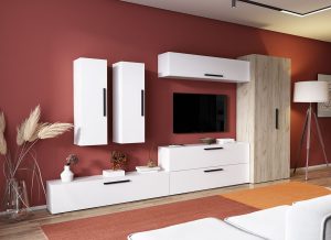 Living Pati 015 – Mobila Sufragerie Alb + Stejar